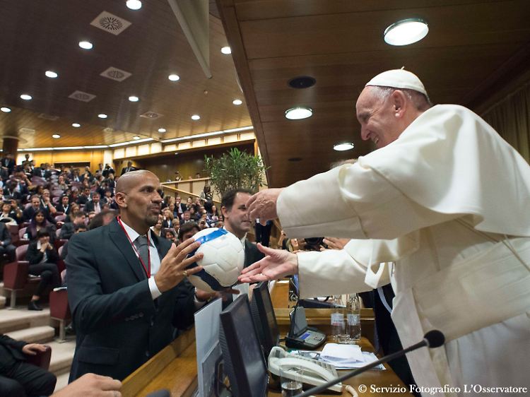 14.10.2016, 09:59 UhrHalleluja! Fußball-Weltmeister Deutschland wird offenbar eine große Ehre zuteil. Denn Bundestrainer Joachim Löw und die deutsche Nationalmannschaft werden am 13. oder 14. November im Vatikan von Papst Franziskus zu einer Privataudienz empfangen, berichtet zumindest die "Bild"-Zeitung. Der Termin in Rom würde zwischen dem WM-Qualifikationsspiel am 11. November (20.45 Uhr/RTL) in Serravalle gegen San Marino sowie der Testbegegnung am 15. November in Mailand gegen Italien liegen. Der in Argentinien geborene Papst gilt als ausgesprochener Fußballfan.