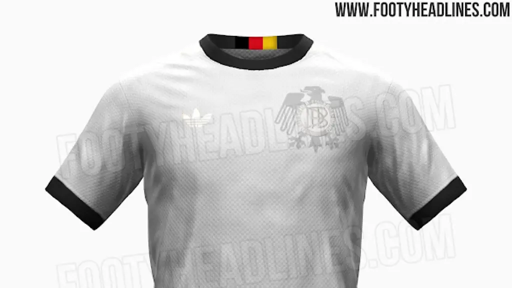 Auf der für gewöhnlich gut informierten Plattform "footyheadlines.com" sind nun erste Bilder des Trikots aufgetaucht. Bis auf Kragen und Bündchen am Ärmel strahlt das Stück Stoff komplett in weiß. Auch das Zeichen des Ausrüsters sowie das DFB-Logo (das erste in der Geschichte des Verbands) sind weiß gehalten.