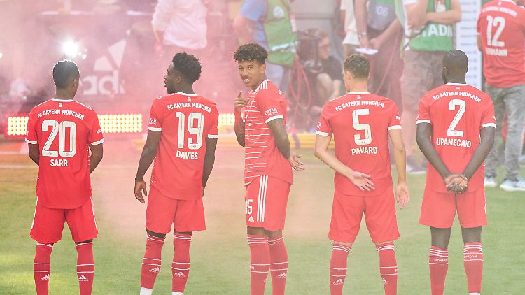Richards (m.) bei der Teampräsentation der Bayern am vergangenen Samstag.