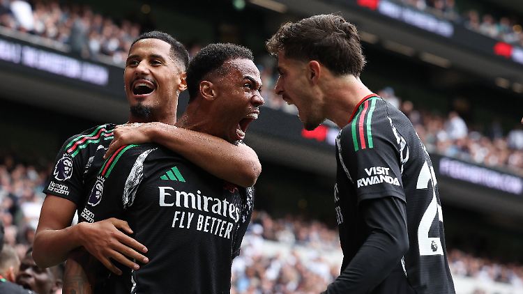 15.09.2024, 18:00 UhrNationalspieler Kai Havertz und der FC Arsenal haben erneut im North London Derby bei Tottenham Hotspur triumphiert und damit in der Premier League den Anschluss an Spitzenreiter Manchester City gehalten. Die Gunners gewannen mit 1:0 (0:0) und siegten zum dritten Mal in Folge im Stadion des Erzrivalen. Im 196. Duell war es der 83. Sieg für Arsenal bei 61 Niederlagen.
