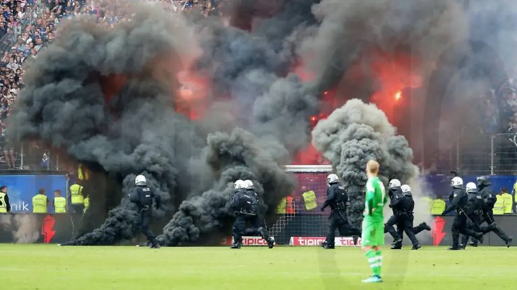 Kurz vor dem Ende der Partie hatte Schiedsrichter Felix Brych das Spiel wegen der Randale abgebrochen. Nach Schätzungen des HSV und der Innenbehörde hatten rund 100 Menschen in der Nordkurve des Volksparkstadions in einer mutmaßlich geplanten Aktion Böller, Rauchtöpfe und bengalische Lichter gezündet. Der Unparteiische Brych hatte die Begegnung nach rund einer Viertelstunde für wenige Sekunden wieder angepfiffen. Nun droht dem HSV eine empfindliche Strafe.
