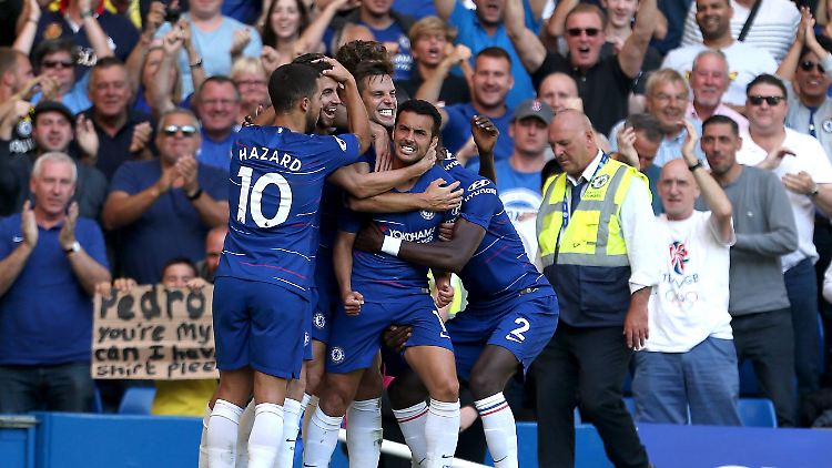 01.09.2018, 19:15 UhrDer englische Fußball-Pokalsieger FC Chelsea hat in der Premier League den vierten Saisonsieg in Serie geholt. Die Mannschaft des italienischen Trainers Maurizio Sarri mühte sich im Heimspiel gegen den AFC Bournemouth zu einem 2:0 (0:0). Pedro (72. Minute) und der überragende Eden Hazard (85.) erzielten an der Stamford Bridge die Tore für die Blues, bei denen der deutsche Nationalspieler Antonio Rüdiger in der Startelf stand. Zuvor war Chelsea fast über die gesamte Partie das bessere Team gewesen, gegen die defensiv auftretenden Gäste aber kaum zu Torchancen gekommen.