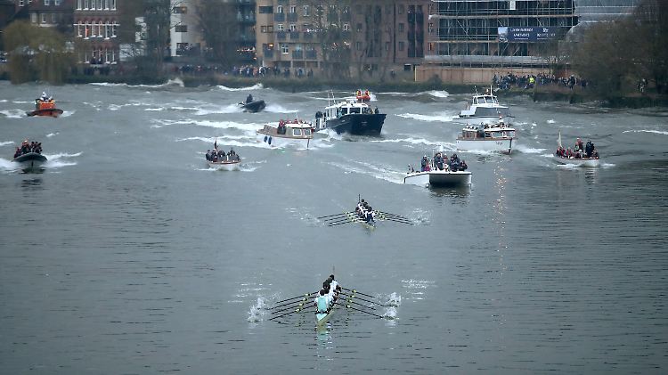 Begleitet von einem riesigen Tross nehmen es die Achter von Oxford und Cambridge auch dieses Jahr miteinander auf.