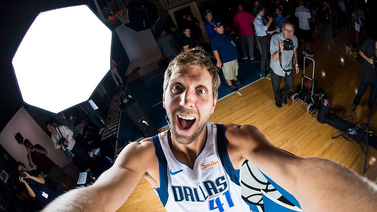 Auf der Bank hat Nowitzki dann künftig ganz viel Zeit für lustige Selfies.