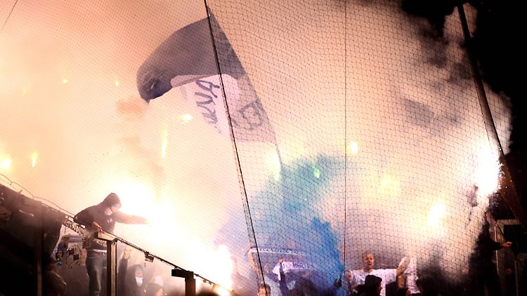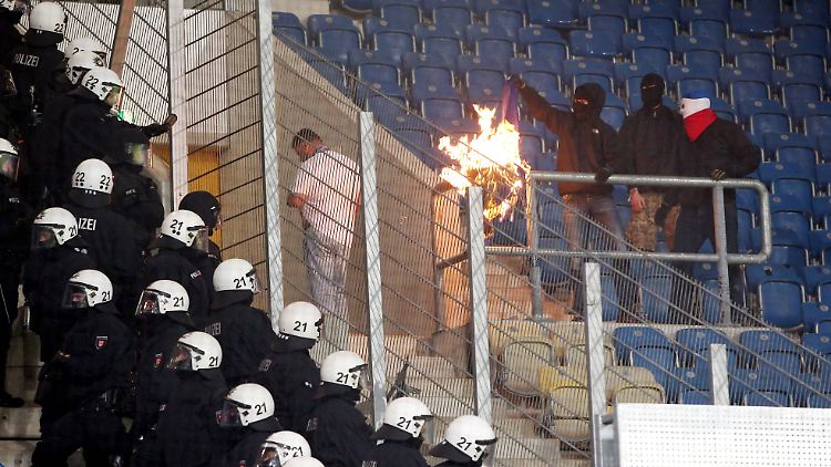 Wie eine Polizeisprecherin am Dienstag erklärte, haben die Beamten versucht, durch einen Tribünenzugang in den Block zu gelangen, als Fußball-Chaoten während der zweiten Halbzeit ein 30 Meter langes Hertha-Banner anzündeten.