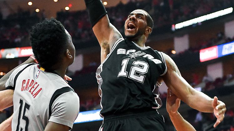 Houston raus, San Antonio drin: Mit einer beeindruckenden Teamleistung schalten die San Antonio Spurs die Houston Rockets aus und stehen im Playoff-Halbfinale der nordamerikanischen Basketball-Profiliga NBA.