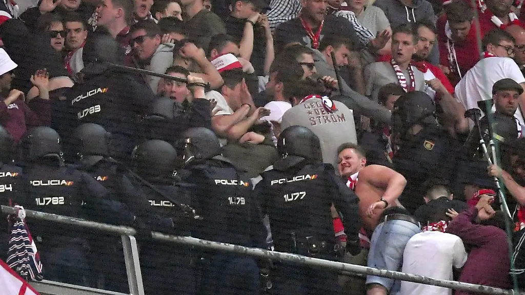 Brutale Prügelszenen aus dem Bernabéu-Stadion in Madrid erreichten uns unter der Woche. Spanische Polizisten gingen mit völlig übertriebener Härte auf Bayern-Fans los (zumindest aus Zuschauersicht). Der FCB protestierte daraufhin bei der Uefa – doch die Hoffnung, dass der Vorfall untersucht wird, scheint gering. Deswegen gehen die Münchner nun noch einen anderen Weg: Der Rekordmeister wendet sich hilfesuchend an die Bundesregierung.