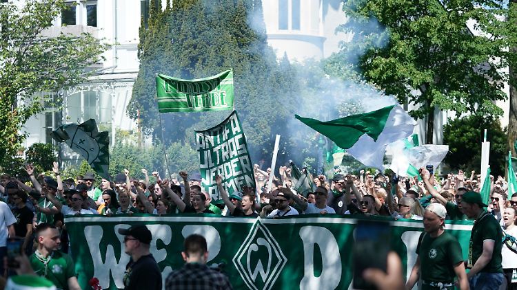 Werder-Ultras im Mai auf dem Weg zum Bundesliga-Aufstieg.