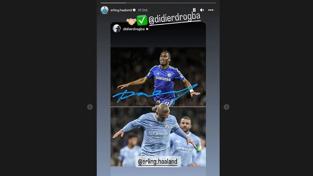 Starstürmer Erling Haaland hat sein Ballon-d'Or-Versprechen gehalten und den Jubel des einstigen Weltklasse-Spielers Didier Drogba imitiert. Der 23 Jahre alte Norweger feierte seinen ersten Treffer beim 3:0 gegen Young Boys Bern mit weit nach unten ausgebreiteten Armen, wie es Drogba einst etliche Male gemacht hatte.
