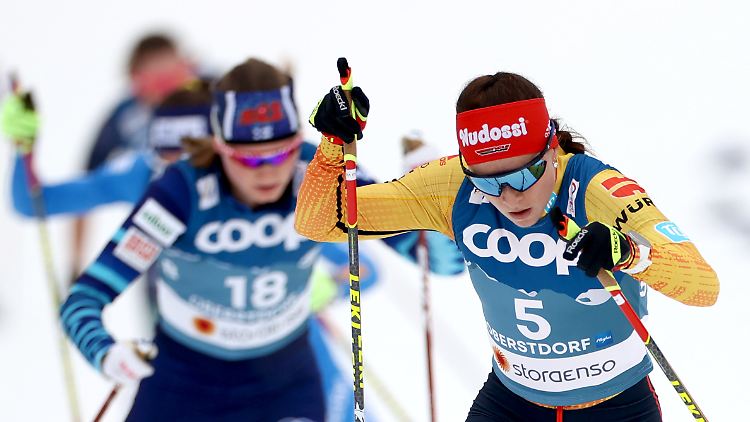- Beste Deutsche war Pia Fink auf Platz 19 (+2:56,2), die schon nach dem Klassikpart schon hoffnungslos abgeschlagene Hennig hatte fast vier Minuten Rückstand. U23-Sprintweltmeisterin Lisa Lohmann wurde 34., Antonia Fräbel kam auf Rang 36.