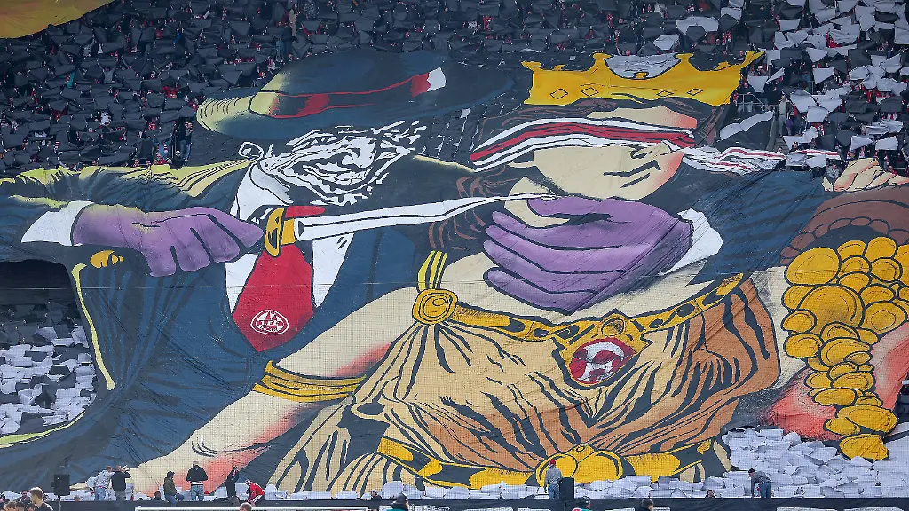 Die Fans des 1. FC Köln haben vor dem Rheinderby (1:1) gegen Fortuna Düsseldorf eine umstrittene Choreographie gezeigt. Auf einem riesigen Banner wurde gezeigt, wie ein Mann mit dem FC-Logo auf seiner Krawatte der Glücksgöttin Fortuna ein großes Messer an den Hals hält. Dazu standen die Worte: "Glück ist kein Geschenk der Götter" - über Lautsprecher lief dazu ein hämisches Lachen. Der Verein hatte diese Aktion der Fans im Vorfeld genehmigt und rechtfertigte sich später.