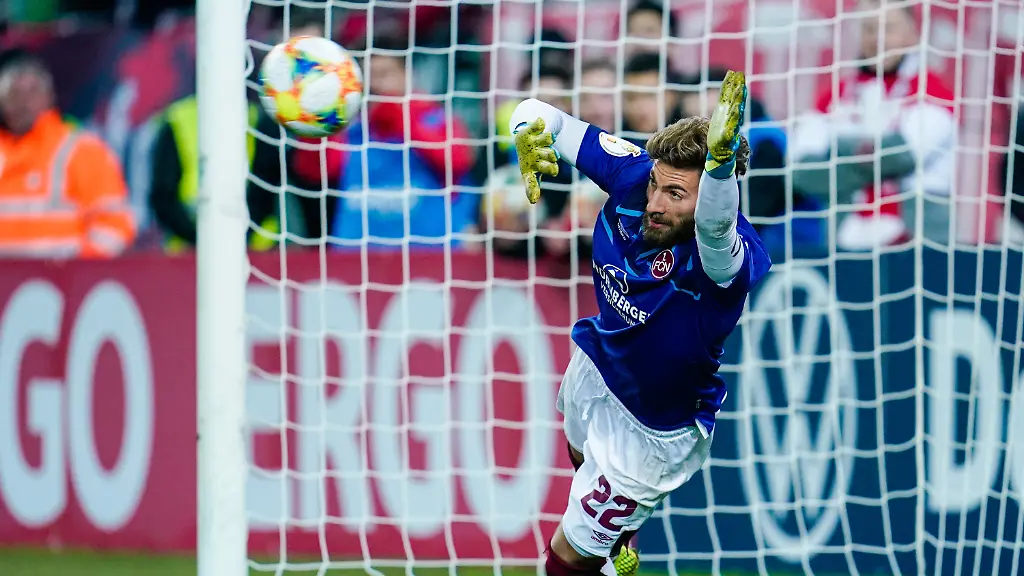 Diese Geschichte wäre dann doch zu schön gewesen für den DFB-Pokal: Weil sich Nürnbergs Keeper Patric Klandt verletzte, als das Wechselkontingent bereits ausgeschöpft war, musste Abwehrspieler Enrico Valentini nach 116 Minuten im Spiel des Clubs beim Drittligisten 1. FC Kaiserslautern zwischen die Pfosten. Einen Elfmeter parierte er aber nicht, der jubelnde FCK gewann (6:5 i.E.). Nicht Valentini, sondern Kaiserslauterns Keeper Lennart Grill, der den späten Ausgleich verschuldet hatte, wurde mit dem gehaltenen Elfer von Tim Handwerker zum Helden.