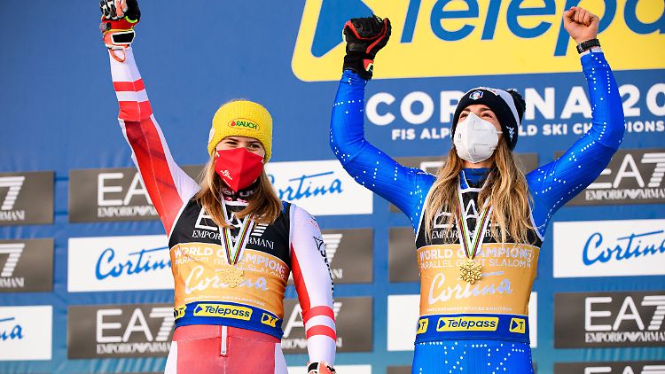 Skirennfahrerin Katharina Liensberger konnte ihr Glück kaum fassen. Die Österreicherin gab nach dem Parallel-Event bei der WM in Cortina d'Ampezzo im Zielraum bereits Interviews, als sie erfuhr, dass sie nicht nur Silber, sondern sogar Gold gewonnen hat. "Einfach genial, ich kann es gar nicht glauben", sagte die 23-Jährige, nachdem sie vor Freude erst laut geschrien hatte und dann auf die Knie gesunken war. "Ich weiß nicht, was ich sagen soll. Ich freue mich riesig. Das ist ein Traum, der in Erfüllung geht." Und das auf äußerst kuriose Art und Weise.