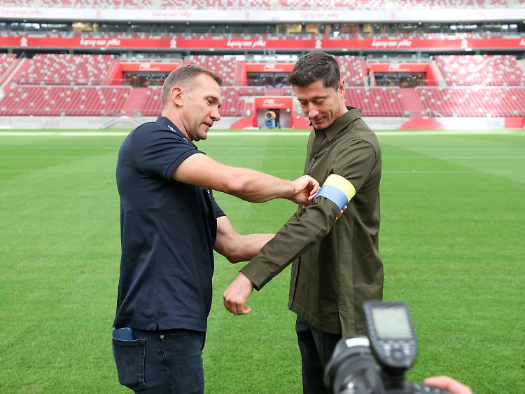 "Danke dir, Andrij. Es war ein Vergnügen, dich zu treffen! Es wird mir eine Ehre sein, diese Kapitänsbinde in den Landesfarben der Ukraine bei der Weltmeisterschaft zu tragen", schrieb der Profi des FC Barcelona auf Instagram und postete dazu ein Bild von sich und Schewtschenko. Polen spielt bei der WM in Katar vom 20. November bis 18. Dezember in der Gruppe C gegen Argentinien, Saudi-Arabien und Mexiko. Die Ukrainer konnten sich nicht qualifizieren. Lewandowski hatte schon zuvor seine volle Unterstützung mit der Ukraine, die sich seit dem 24. Februar gegen einen russischen Angriffskrieg zur Wehr setzt, zum Ausdruck gebracht. Der Torjäger und seine polnischen Nationalmannschafts-Kollegen hatten öffentlich erklärt, in den Playoffs zur WM am 24. März nicht wie angesetzt gegen Russland antreten zu wollen.