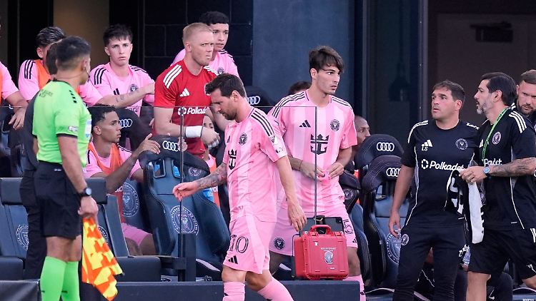 03.08.2025, 12:11 UhrLionel Messi musste bei Inter Miamis Sieg im League Cub nach Elfmeterschießen schon nach wenigen Minuten ausgewechselt werden. Bei einem Dribbling gegen gleich mehrere Spieler von Gegner Club Necaxa aus Mexiko zog sich der 38 Jahre alte argentinische Fußball-Weltmeister eine Verletzung zu. Anschließend spielte er noch kurz weiter, ließ sich dann aber am rechten Oberschenkel behandeln.