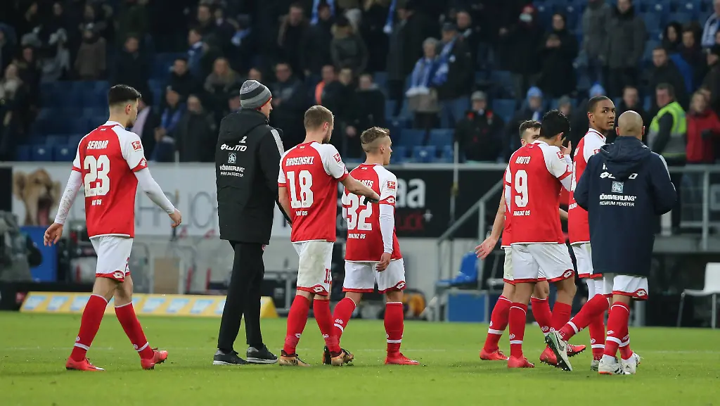 Die 2:4-Niederlage in Hoffenheim hat Mainz 05 schwer zugesetzt. Dabei geht es um mehr als "nur" Punkte. Bei dem Spiel gestern hatten Mainzer Fans Spottgesänge über die eigene Mannschaft angestimmt, diese verweigerte deshalb nach Abpfiff den obligatorischen Gang in die Kurve. Nun haben Spieler, Trainer und Betreuer einen Appell an die Fans gerichtet.