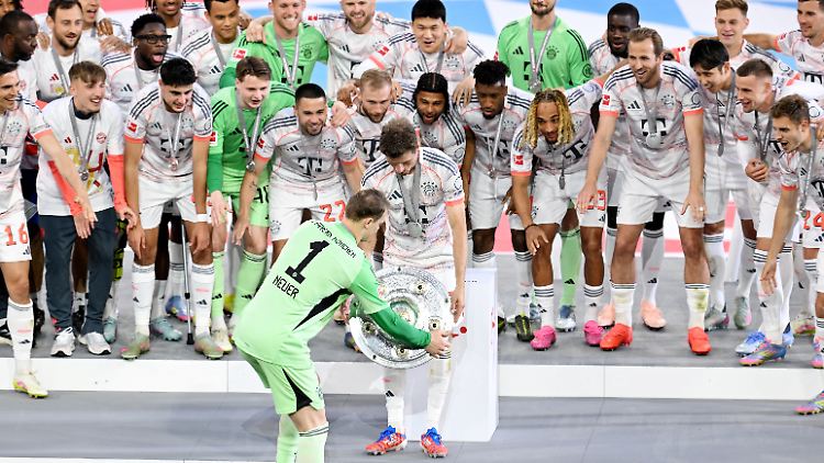 10.05.2025, 21:00 UhrAn seinem emotionalen Abschiedstag hat Thomas Müller die Meisterschale für den Titelgewinn des FC Bayern München in Empfang genommen. Der etatmäßige Kapitän Manuel Neuer überließ dem scheidenden Teamkollegen die Ehre, die begehrteste Trophäe im deutschen Fußball entgegenzunehmen und in die Höhe zu recken.