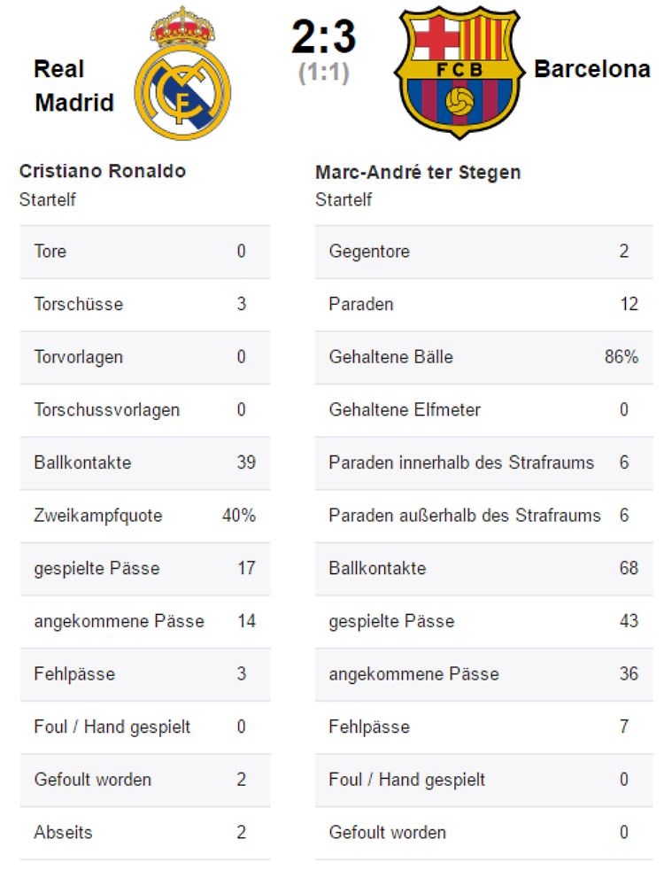 Die Spiel- und Spielerstatistiken zum Clásico finden Sie hier.