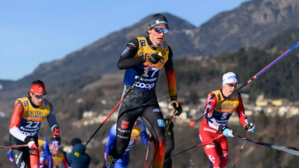 Langläufer Friedrich Moch hat bei der Tour de Ski für das nächste deutsche Topergebnis gesorgt, auf den ersten Podestplatz der Saison muss die Auswahl von Bundestrainer Peter Schlickenrieder aber weiter warten. Im Skiathlon von Val di Fiemme kam der Überraschungszweite des Vorjahres auf Platz sechs und lief nur um 1,3 Sekunden am Stockerl vorbei. Für Moch war es dennoch das beste Saisonergebnis, "Das hat er wirklich top gemacht", sagte Schlickenrieder in der ARD: "Er hat das Maximale rausgeholt, das war richtig gut gemacht, das kann man nur loben. Das ist der Schritt, den man braucht."