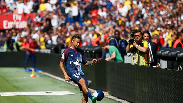 Der 25-Jährige, der mit geschniegelter Frisur und Silberohrringen auflief, lässt immerhin kurz seine Fähigkeiten aufblitzen, als er zu den Klängen von Star-DJ Martin Solveig einige Bälle hochhält und die Menge zum Johlen bringt. Auch eine ausgiebige Begrüßungsrunde durch das gesamte Stadion lässt sich der Kapitän der brasilianischen Nationalmannschaft nicht nehmen.