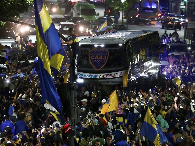 Tausende Fans verabschiedeten sich gestern von den Spielern der Boca Juniors, bevor diese sich auf den Weg zum Copa-Finale in Madrid machten.