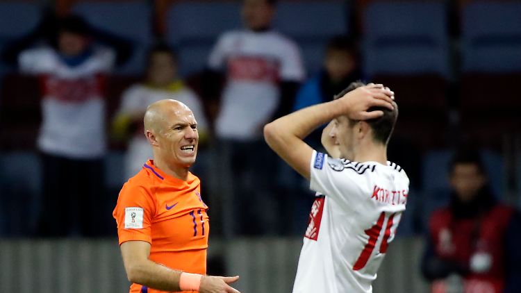 08.10.2017, 15:43 UhrEinmal müssen wir noch das Lied von "Ohne Holland fahr'n wir zur WM" anstimmen – versprochen, es ist das letzte Mal für heute. Denn nun glaubt nicht mal mehr der Kapitän der Elftal, Arjen Robben himself, an ein orangefarbenes Wunder.