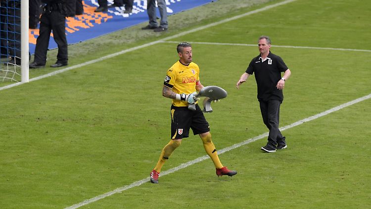 Musste fast mehr Sitzschalen und Stangen vom Feld räumen als Torschüsse parieren: Der Regensburg-Keeper Philipp Pentke.