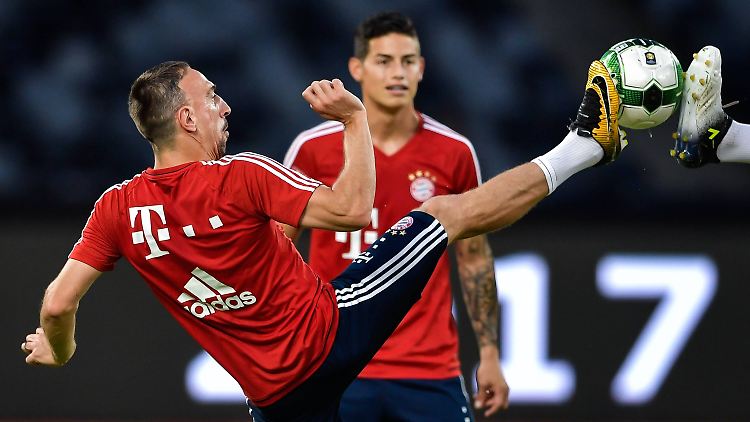 Hoch das Bein: Ob der Ribéry'schen Flexibilität staunt sogar Bayern-Neuzugang James.