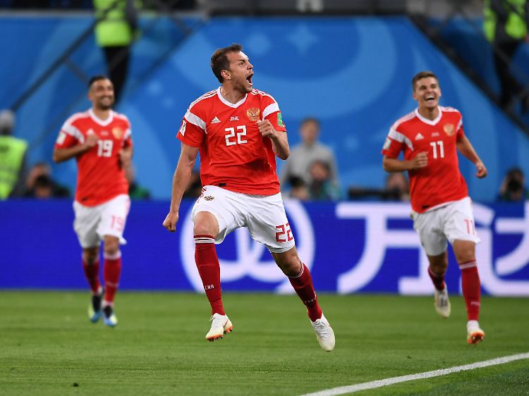 Gastgeber Russland steht so gut wie sicher im Achtelfinale der Fußball-WM. Die Mannschaft von Trainer Stanislaw Tschertschessow kam am zweiten Spieltag der Gruppe A in St. Petersburg gegen Ägypten zu einem 3:1 (0:0)-Sieg und weist nach zwei Partien sechs Punkte auf. Ahmed Fathy (47., Eigentor) sorgte für die russische Führung. Denis Tscheryschew (59.) mit seinem dritten Turniertor und Artjem Dschjuba (62.) machten alles klar. Superstar Mohamed Salah (73., Foulelfmeter) konnte nur noch verkürzen.