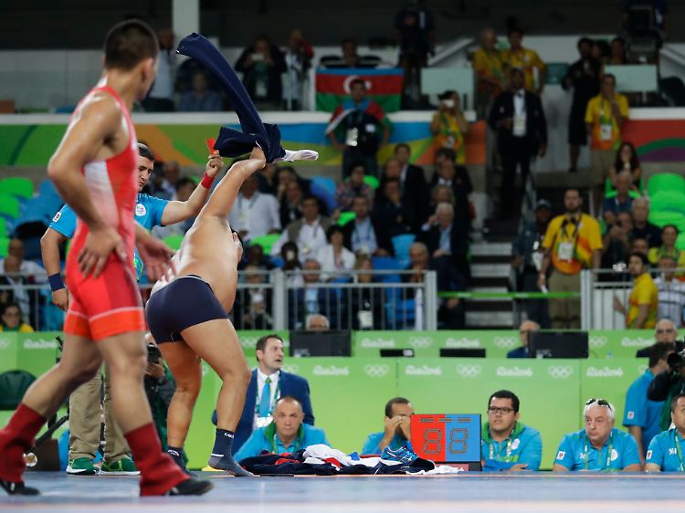 Vor Wut entkleidete sich der mongolische Ringer-Trainer Tsenrenbataar Tsostbayar in Rio bis auf die Unterhose.