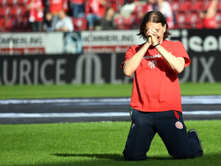 Mitte Mai steht jetzt fest: Das Treuebekenntnis zum Coach hat sich ausgezahlt, nach dem wilden 4:2 gegen Eintracht Frankfurt haben die Mainzer den Klassenerhalt praktisch sicher.