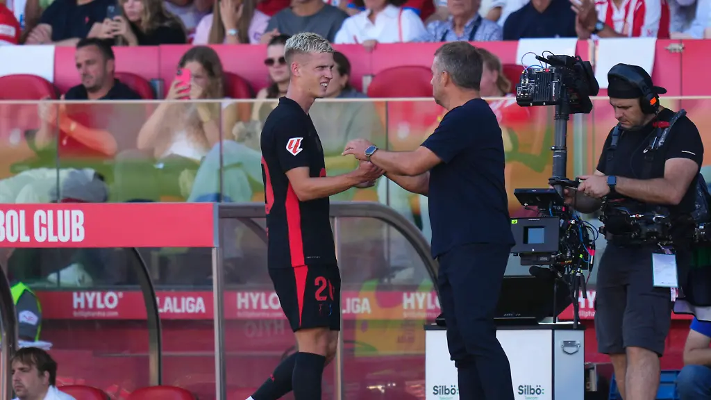 Eine Oberschenkelverletzung bremst Fußball-Europameister Dani Olmo beim FC Barcelona aus. Wie der spanische Tabellenführer mitteilte, fällt der Neuzugang aus Leipzig "vier bis fünf Wochen" aus. Der Mittelfeldspieler hatte sich am Sonntag beim 4:1-Erfolg beim FC Girona am rechten Oberschenkel verletzt. Zuvor erzielte der ehemalige Leipziger sehenswert das 3:0.