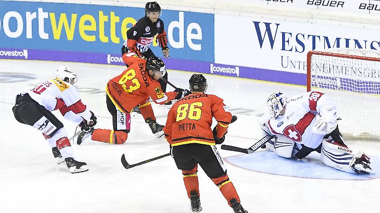 10.11.2018, 16:32 UhrDas Eishockey-Nationalteam hat auch das zweite Spiel beim Deutschland Cup verloren und damit keine Chance mehr auf den erhofften achten Turniersieg. Die Auswahl des scheidenden Bundestrainers Marco Sturm verlor mit 3:4 (1:2, 0:1, 1:0) nach Penaltyschießen in Krefeld gegen die Schweiz. Leo Pföderl (2. Minute) mit seinem dritten Turniertreffer, Neuling Lean Bergmann aus Iserlohn (52.) und Berlins Marcel Noebels (60.) waren vor 6113 Zuschauern die deutschen Torschützen. Für die Schweiz trafen Yannick Herren (3.) und Noah Rod (10./28.). Den entscheidenden Penalty verwandelte Lino Martschini.