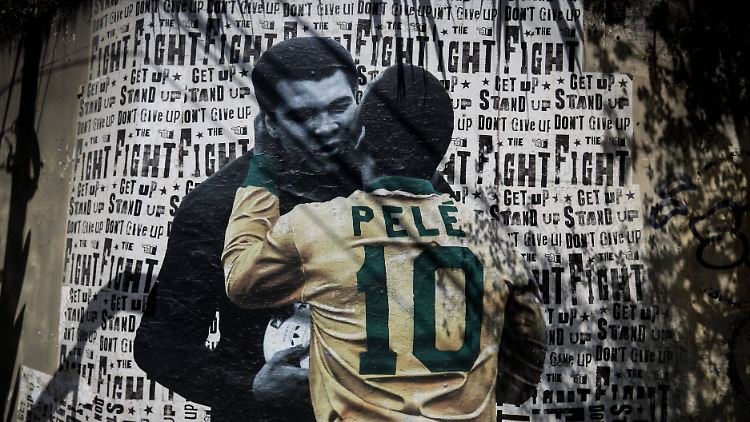 Ein Wandgemälde in São Paulo zeigt Pele und den Boxer Muhammad Ali.