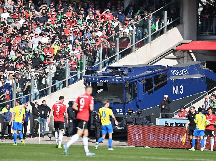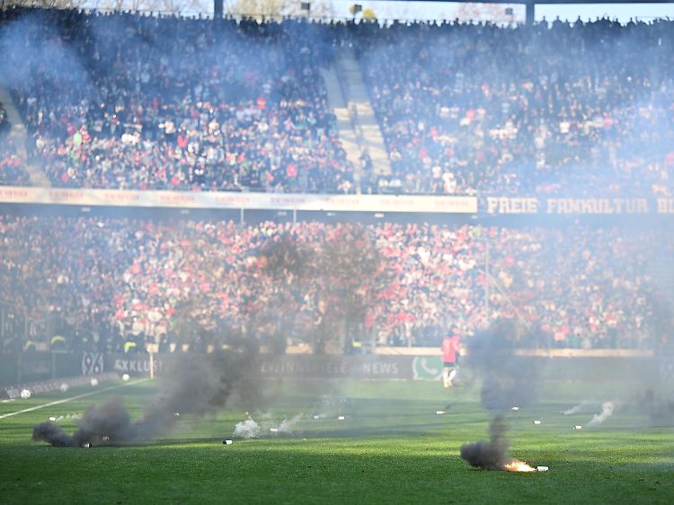 Ein Wasserwerfer fährt ins Stadion, auf dem Rasen brennen die Überreste von Rauchtöpfen, die die Sicht vernebeln. Eskalation beim Zweitliga-Derby zwischen Hannover 96 und Eintracht Braunschweig. Der Schwarze Block der Gäste sorgt für Ausschreitungen.
