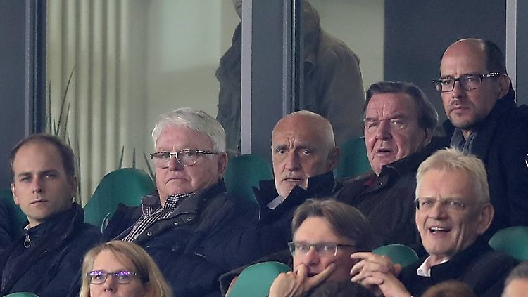 Die Pläne von Kind (m. neben Altkanzler Schröder) stoßen im Verein auf Widerstand.
