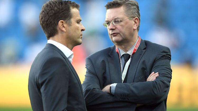 Oliver Bierhoff und Reinhard Grindel sind uneinig über die Nationenliga.