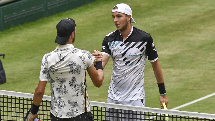 Konnte nur noch gratulieren: Jan-Lennard Struff (rechts) verlor im Achtelfinale in Halle.