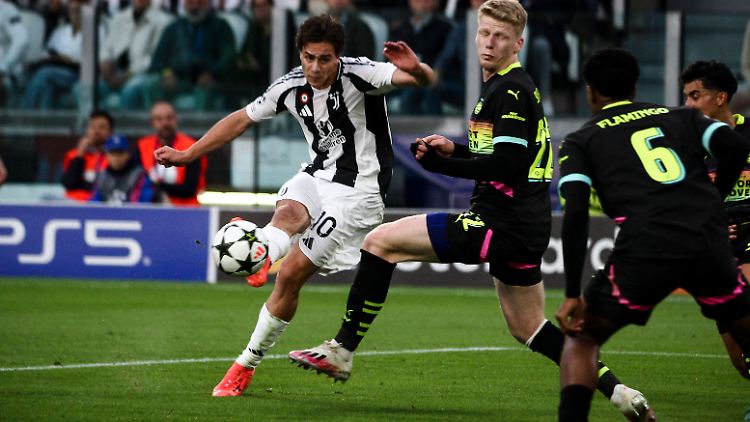 18.09.2024, 11:54 UhrItalien schwärmt vom gebürtigen Regensburger Kenan Yildiz, der bei seiner Premiere in der Champions League am Dienstagabend einen starken Auftritt hingelegt hat. Bei Juventus Turins 3:1-Erfolg gegen die PSV Eindhoven traf der türkische Nationalspieler mit einem traumhaften Schlenzer in den rechten Winkel zum 1:0 und avancierte mit 19 Jahren und 136 Tagen zu Juves jüngstem Torschützen in der Königsklasse.