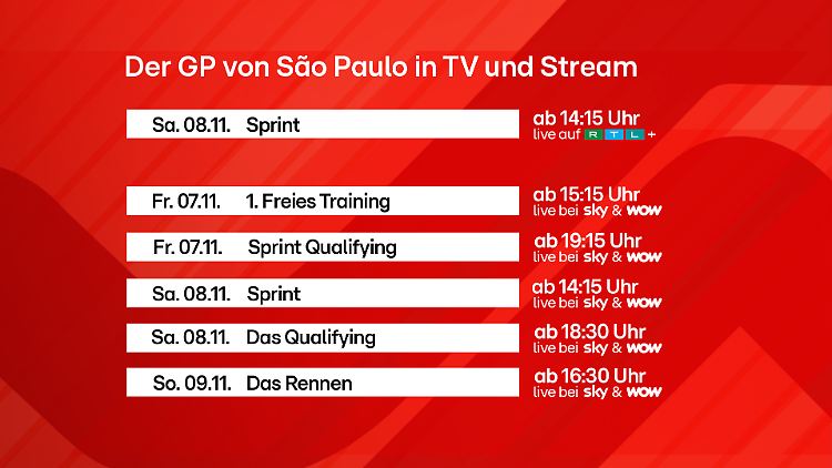 08.11.2025, 15:29 UhrBitter für Oscar Piastri: Der Zweite in der Formel-1-Fahrerwertung crasht im Sprintrennen beim Großen Preis von Sao Paulo schon nach wenigen Runden, das Rennen muss unterbrochen werden. McLaren-Pilot Piastri liegt im engen Rennen um den Titel nur einen Punkt hinter seinem Teamkollegen Lando Norris, der als Führender das Rennen wiederaufnehmen wird. Gewinnt Norris den Sprint, baut er seinen Vorsprung auf neun Punkte aus.