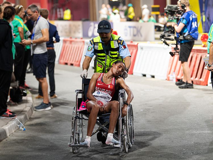 Temperaturen von 30 Grad Celsius, mehr als 70 Prozent Luftfeuchtigkeit: Der WM-Marathon der Frauen am vergangenen Freitag in Doha war eine Tortur, nur 40 der 68 Teilnehmerinnen schafften es überhaupt ins Ziel, die Siegerinnenzeit war die langsamste der WM-Geschichte. Äthiopiens Leichtathletik-Verband zieht daraus nun Konsequenzen, obwohl seine drei Starterinnen das Ziel erreicht hatte. Für alle Starter aus Äthiopien beim WM-Marathon in Doha ordnete der Verband eine dreimonatige Wettkampfpause an. Das geschehe aus Sorge um die Gesundheit der Läufer, teilte der Verein mit und kündigte "verschiedene Konsequenzen" im Fall einer Missachtung an.