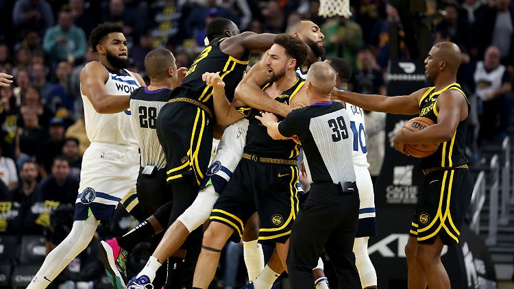 15.11.2023, 08:00 UhrDie NBA-Stars Draymond Green und Klay Thompson von den Golden State Warriors sind noch vor dem ersten Korb vom Platz geflogen. Auch Jaden McDaniels von den Minnesota Timberwolves musste am Dienstagabend (Ortszeit) beim Stand von 0:0 in die Kabine.