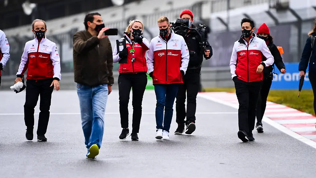 Wenn das Wetter bei der Streckenbegehung als Orakel taugt, dann erlebt Mick Schumacher ein ungemütliches Debüt in der Formel 1. Bei knapp zehn Grad, Regen und Wind macht so ein Spaziergang über den Nürburgring vermutlich nicht den größten Spaß, trotzdem wird der 21-Jährige die 5,148 Kilometer zu Fuß genossen haben. Spätestens, nachdem er sich in der Alfa-Romeo-Garage anschließend wieder etwas aufgewärmt hatte. Denn für den schweizerischen Rennstall dreht der Ferrari-Junior am Freitag (11 Uhr live bei ntv und im ntv.de-Liveticker) im ersten Freien Training zum Großen Preis der Eifel seine ersten offiziellen Runden in der Königsklasse des Motorsports.