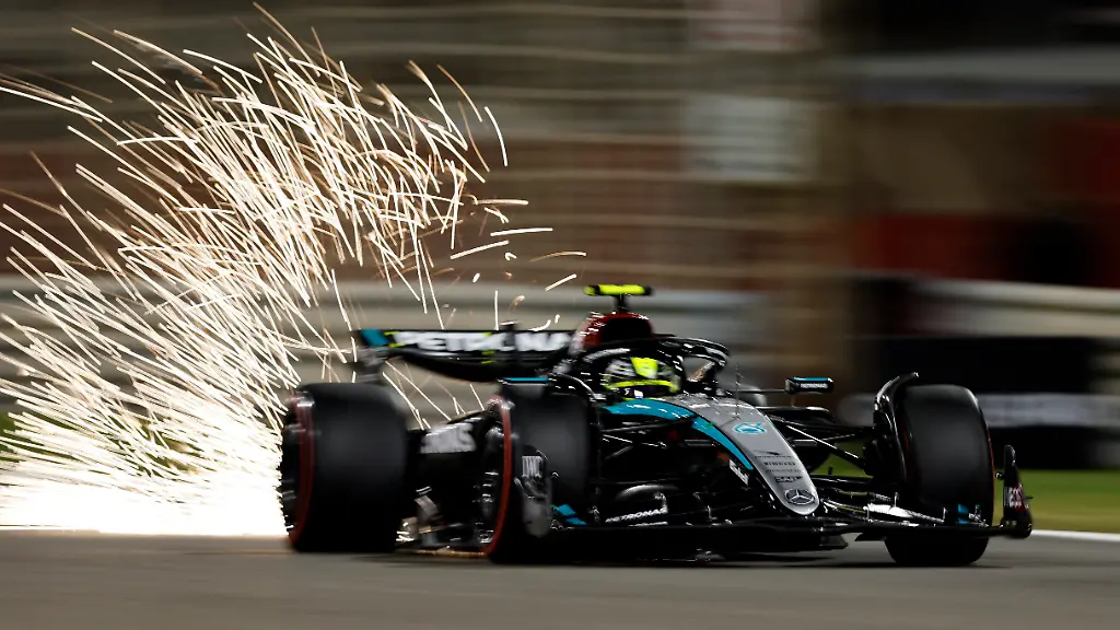 Lewis Hamilton sorgt für eine Überraschung im ersten Training zur neuen Formel-1-Saison: Der Rekordweltmeister fährt im Mercedes die schnellste Runde in Bahrain. Direk daahinter: Teamkollege George Russell. Formel-1-Titelverteidiger Max Verstappen flucht.