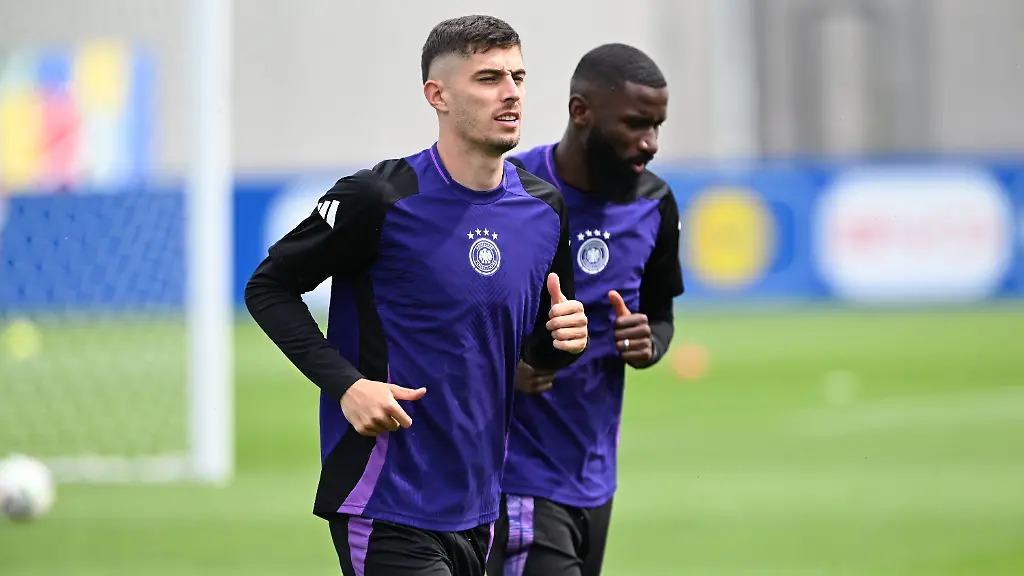 Bundestrainer Julian Nagelsmann hofft auf einen Einsatz von Abwehrchef Antonio Rüdiger im EM-Achtelfinale gegen Dänemark. Der Abwehrchef stand zumindest zu Beginn des Abschlusstrainings in Herzogenaurach nach seiner Oberschenkelzerrung gut gelaunt auf dem Platz und scherzte bei der Aufwärmrunde mit Jamal Musiala. Nach seiner Zerrung im Oberschenkel waren bei ihm bei den ersten Übungen keine Probleme zu erkennen. Allerdings waren nur die ersten 15 Minuten der Einheit für die Medien einsehbar.