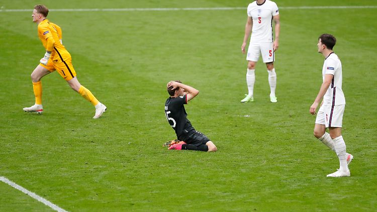 48. Minute: Kai Havertz schießt wie jemand, der schon mal ein Champions-League-Finale entschieden hat. Die Flanke von Robin Gosens nimmt er aus 16 Metern direkt, das ist nicht nur torgefährlich, sondern auch technisch wertvoll. Allerdings hält Jordan Pickford in dieser Situation auch wie jemand, der in diesem Turnier noch unbezwungen ist.