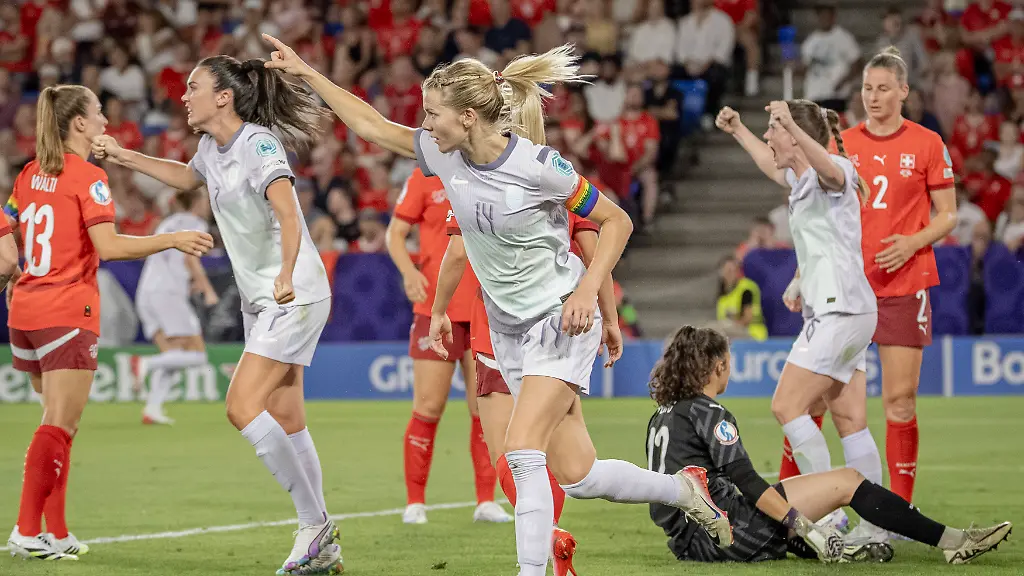 Norwegen um Abwehrchefin Tuva Hansen vom FC Bayern blieb zunächst eher passiv. Das änderte sich nach der Pause. Nach einem Eckball traf erst Hegerberg per Kopf zum Ausgleich. Und passend zu den ersten zarten "Norge, Norge"-Rufe aus dem kleinen Gästeblock grätschte Stierli den Ball bei einem Rettungsversuch ins eigene Tor. Torhüterin Livia Peng, die von Werder Bremen zu Chelsea wechselt, verhinderte gegen Hegerberg reflexartig gar das 1:3.