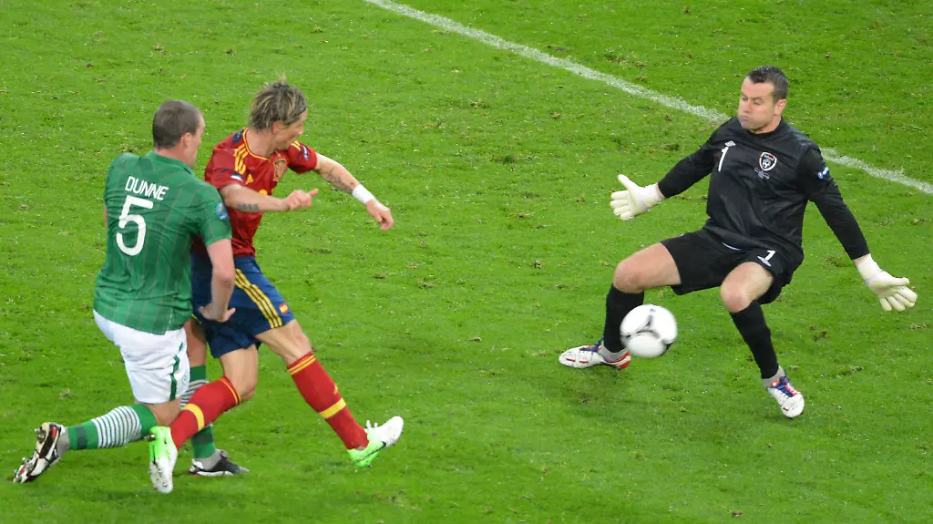 Es kam Torres, Matchwinner des EM-Finals 2008 gegen Deutschland (1:0). Die Entscheidung ließ Weltmeistertrainer del Bosque vor 39.150 Zuschauern in der "Bernstein"-Arena in Danzig als weisen Mann erscheinen. Torres, losgelassen wie ein Rennpferd, das endlich aus der Box darf, machte in der Tat gleich das, was einen Torjäger auszeichnet. Die Iren fingen einen genialen Pass von Andrés Iniesta ab, trödelten dann jedoch herum, Torres ging energisch dazwischen, umkurvte den tölpelhaft wirkenden Stephan Ward und schoss den Ball mit brachialer Gewalt ins Netz. 3:47 Minuten waren gespielt - es war das schnellste Tor der spanischen EM-Geschichte. Beim Jubel zeigte der Schütze mit dem Zeigefinger auf sein Ohr. Ende der Diskussion. In der 74. Minute wurde er unter Applaus ausgewechselt.