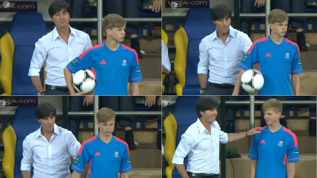 Beim Spiel gegen die Niederlande in Charkow (2:1) war Löw in der 22. Minute scheinbar an der Seitenlinie auf einen ukrainischen Balljungen zugegangen und hatte diesem den Ball aus dem Arm gespitzelt. Als der Junge etwas verdutzt guckte, gab es einen freundschaftlichen Klaps von Löw auf die Schulter und den Ball per Hacke zurück. Die Szene war allerdings vor dem Anpfiff aufgezeichnet worden.