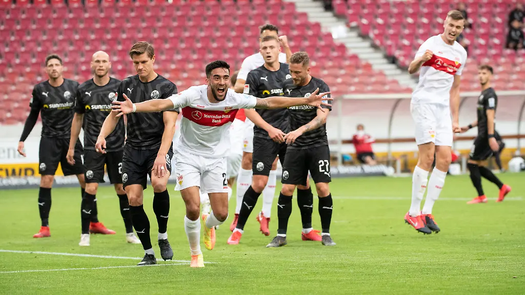 Die dritte Bundesliga-Rückkehr nach 1977 und 2017 kann die Mannschaft von Trainer Pellegrino Matarazzo, die zeitgleich beim Mitabsteiger 1. FC Nürnberg gefordert ist, dann allerdings noch nicht perfekt machen. Sandhausen (40) hat den Klassenerhalt trotz der deutlichen Niederlage hingegen schon sicher. Der Anstoß verschob sich witterungsbedingt um 15 Minuten, doch die VfB-Kicker ließen sich davon überhaupt nicht aus dem Konzept bringen. Die Mannschaft zeigte ein vollkommen anderes Gesicht als bei der peinlichen 1:2-Derbyniederlage in Karlsruhe, agierte spielfreudig und zielstrebig. Nach einer Ecke von Philipp Klement köpfte Gonzalez wuchtig zur beruhigenden Führung ein, Castro erhöhte per Volley aus 20 Metern. Nach einer starken Einzelleistung von Silas Wamangituka beförderte der unglückliche Kister den Ball mit dem Knie ins eigene Tor, erneut Gonzalez nahm noch vor der Pause viel Luft aus der Partie.